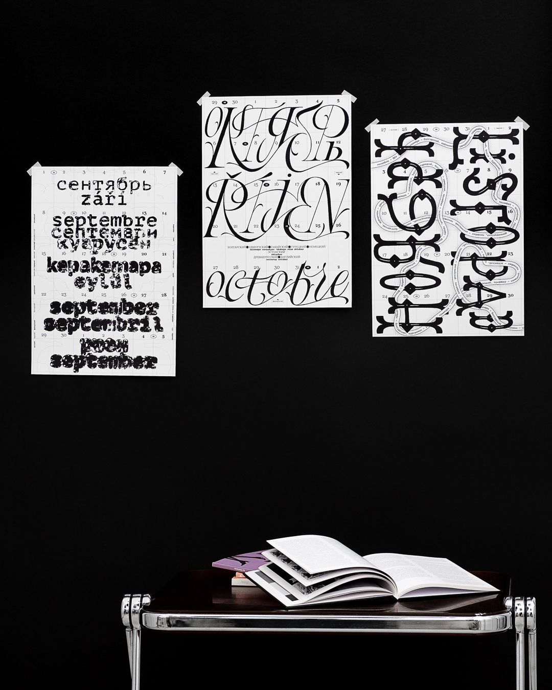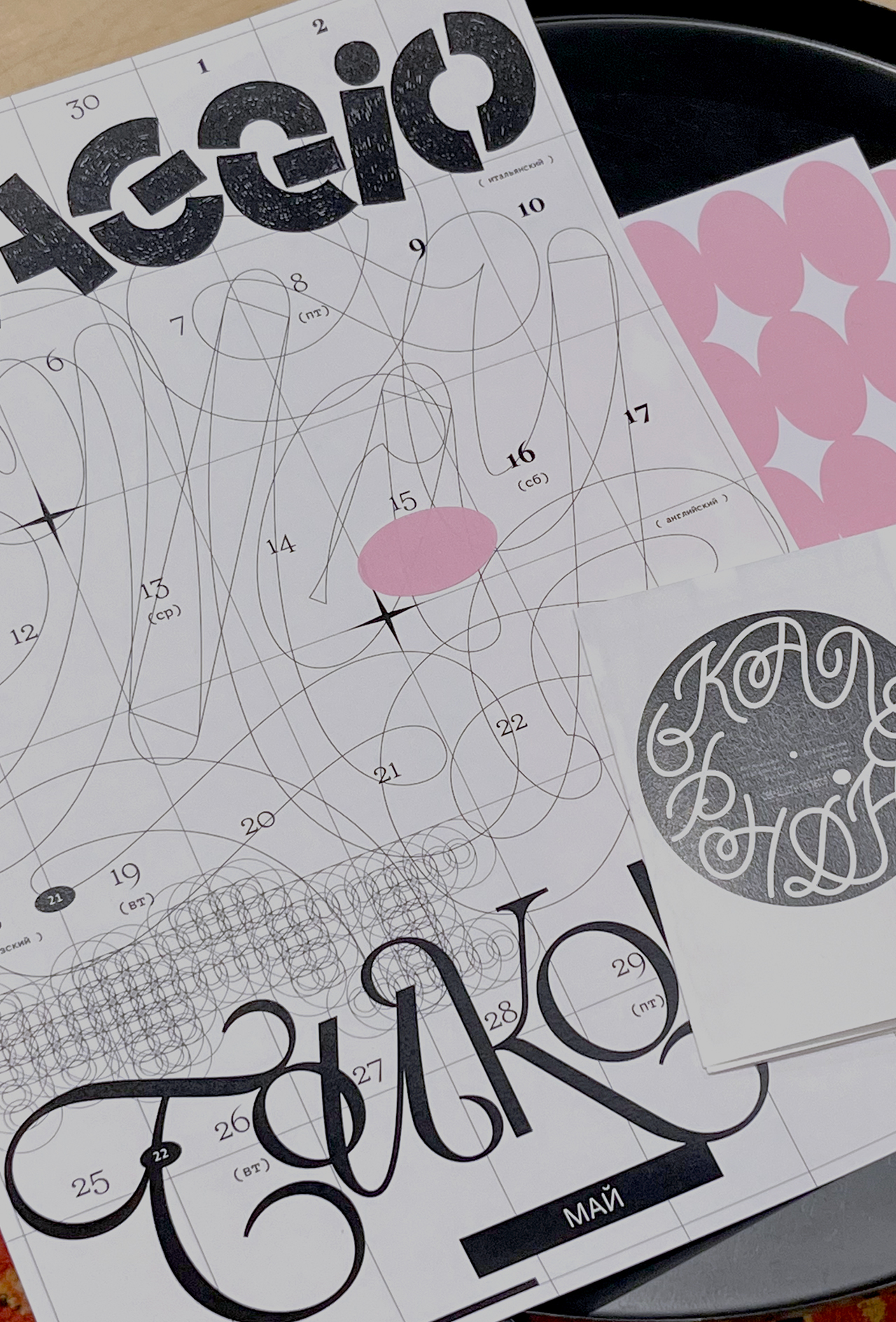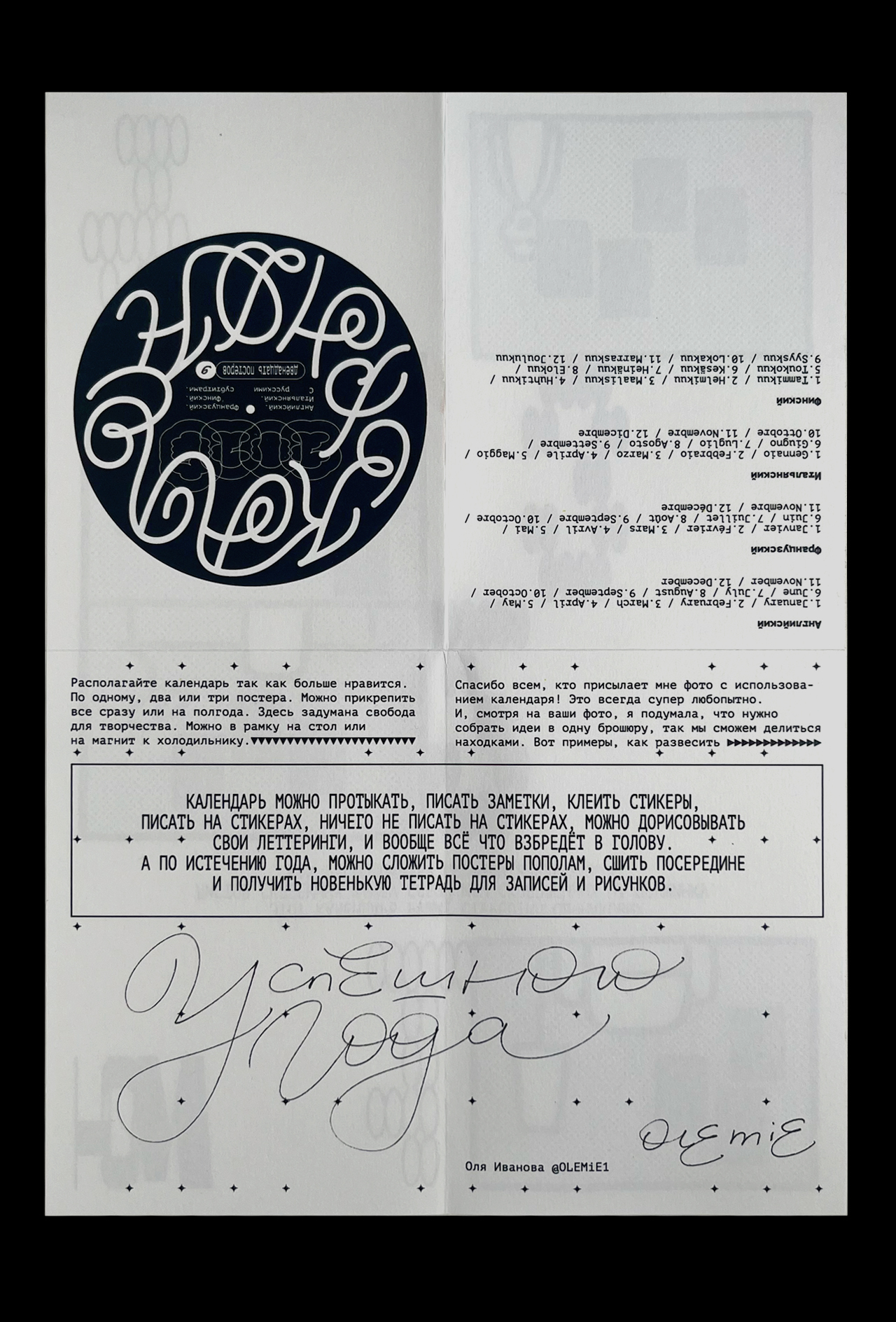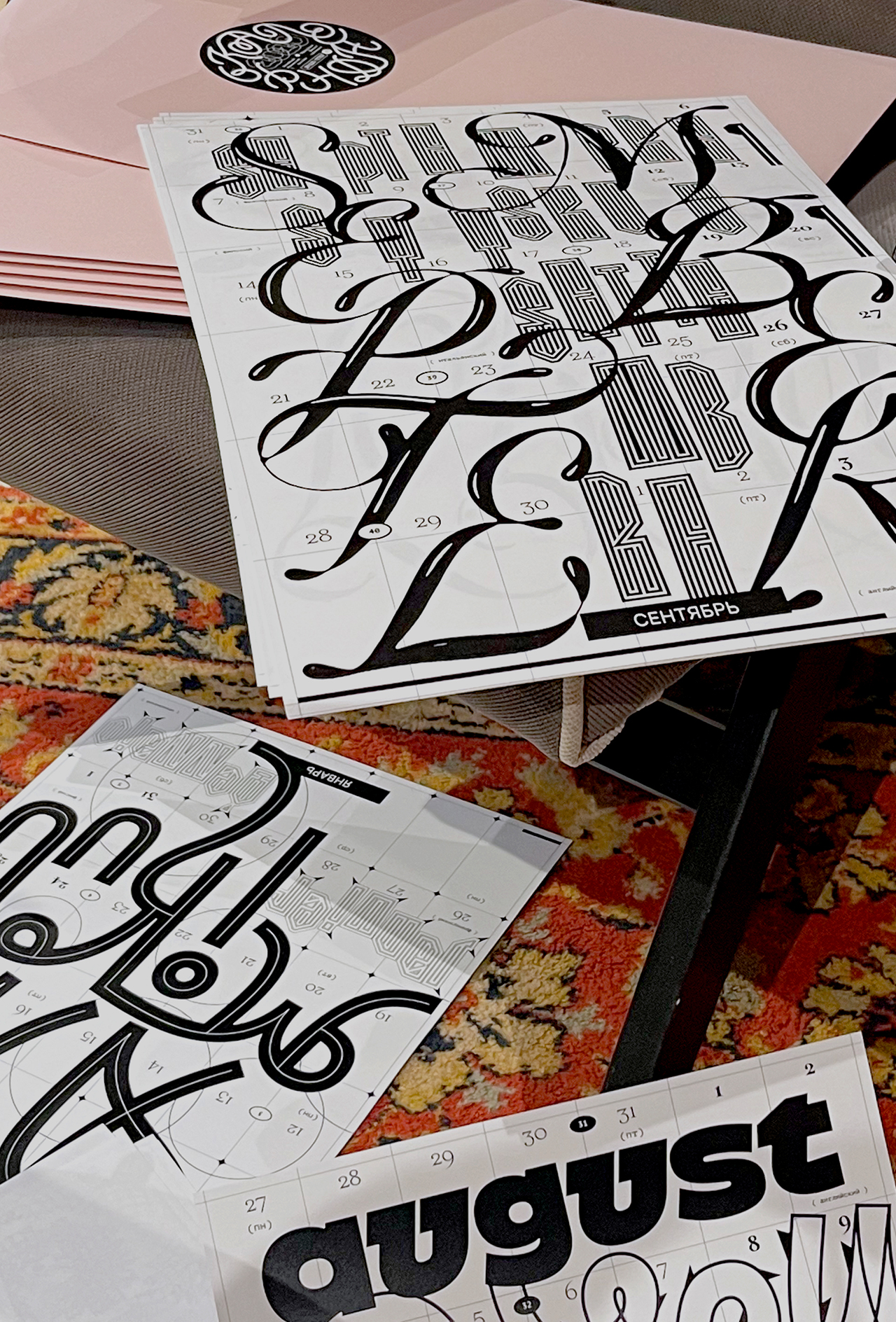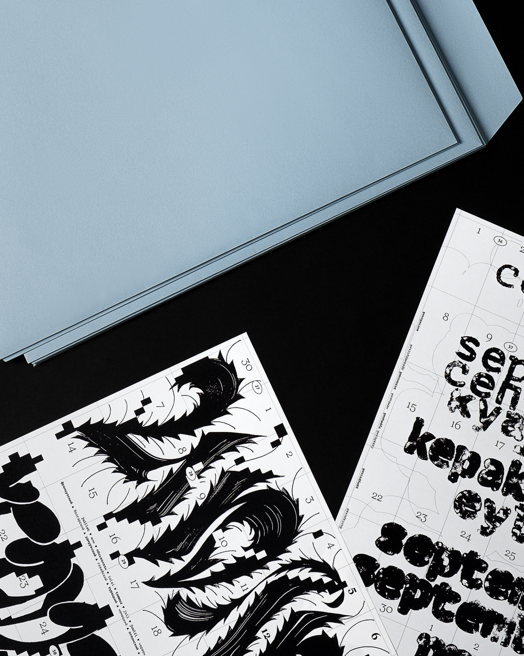 Леттеринг и шрифты в календаре говорят на разных языках: татарский, русский, финский, турецкий, английский, французский, хорватский, польский, португальский, исландский, латвийский, венгерский, чешский, белорусский, украинский, вьетнамский.